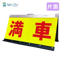 車のライトなどで光が反射する高輝度の反射シート採用モデルや、内照式(電飾スタンド看板)看板をご検討ください。満車/空車などの状態表示も夜間視認に有効です。