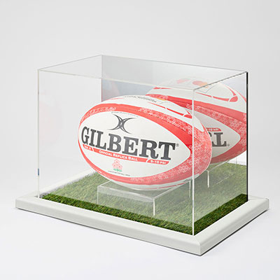 【装飾/ディスプレイパーツ】ラグビーボールケース 背面鏡付仕様 (フレーム:CFネオホワイト 台座:人工芝) 商品詳細 | 看板の激安通販ならサインシティ