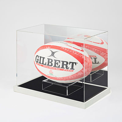 ラグビーやアメフトの楕円形のボールを美しく飾れるコレクションケースです。
