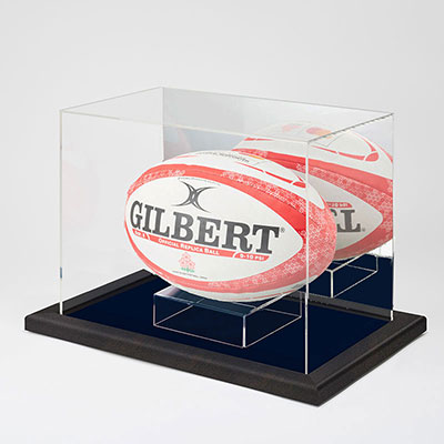 ラグビーやアメフトの楕円形のボールを美しく飾れるコレクションケースです。