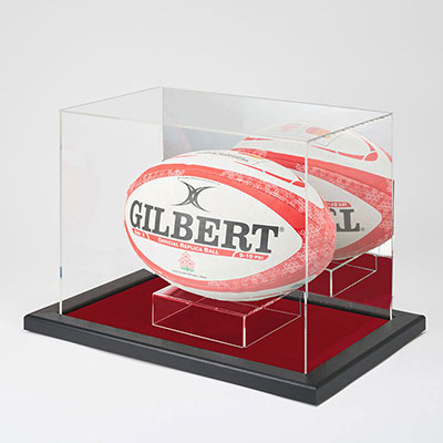 ラグビーやアメフトの楕円形のボールを美しく飾れるコレクションケースです。