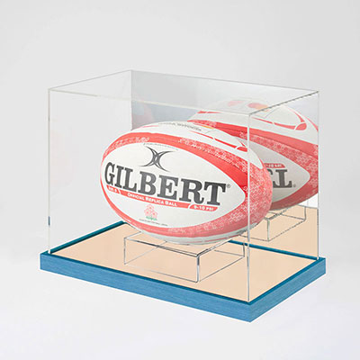 ラグビーやアメフトの楕円形のボールを美しく飾れるコレクションケースです。