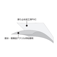 CatWalk(キャットウォーク)は表面に滑止めのエンボス加工された塩ビメディアです。耐油・薬品性が高く、ガソリンや各種オイルなどの石油類、塩分や塩素(漂白剤)などの化学薬品に晒される環境での使用が可能です。