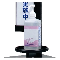 一般的な消毒液ボトルを置いて頂ける置台付き。