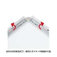 ・便利な四方開閉式。パカッと4方のフレームをオープンするだけで、簡単に素早くポスターのセットが可能。