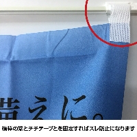チチテープは一般的には上に 3 つ、左側に 5 つ付きますが、のぼり旗を設置する場所や用途等でチチテープの向きをお選びいただくことが可能です。