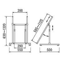 高さ、角度の調整が可能で、A1サイズのパネルをセットして、全体の高さを1mにすることができます。