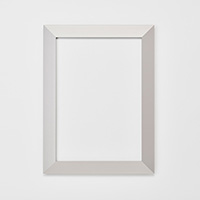 三角形の断面をしたこの額は、正面から見ると幅広でエレガントに、しかしそれ以外の角度からは薄く軽やかな印象を与えます。角の部分で切り替わるアルミの輝きもシャープで存在感があります。