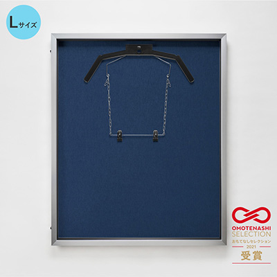 【ポスターフレーム】前開き式ユニフォーム額ダブルハンガー L(フレーム:シルバー 布:紺)UVアクリル 商品詳細 | 看板の激安通販ならサインシティ