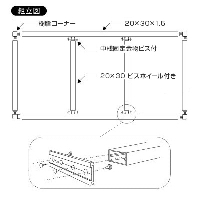 簡易的にアルミフレームを製作する場合は、【20×30×1.5 L=4000】と【樹脂コーナー】をご購入いただくことで簡単に組み立てることが可能です。