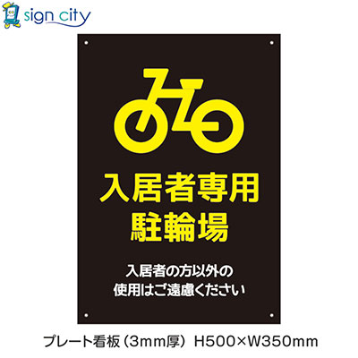 【壁面看板】駐車場 プレート看板 W350XH500mm 縦 004_入居者専用駐輪場_黒 商品詳細 | 看板の激安通販ならサインシティ