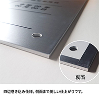 アルミ複合板にステンレス調のシートを貼り付けて製作しており、丈夫で軽量。側面まで美しい巻き込み仕上げです。